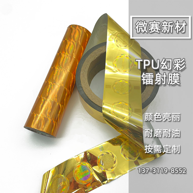 3、TPU镭射膜具有烟用高光泽,全息层赋予膜更好的抗静电,防粘连性与上机适应性高。