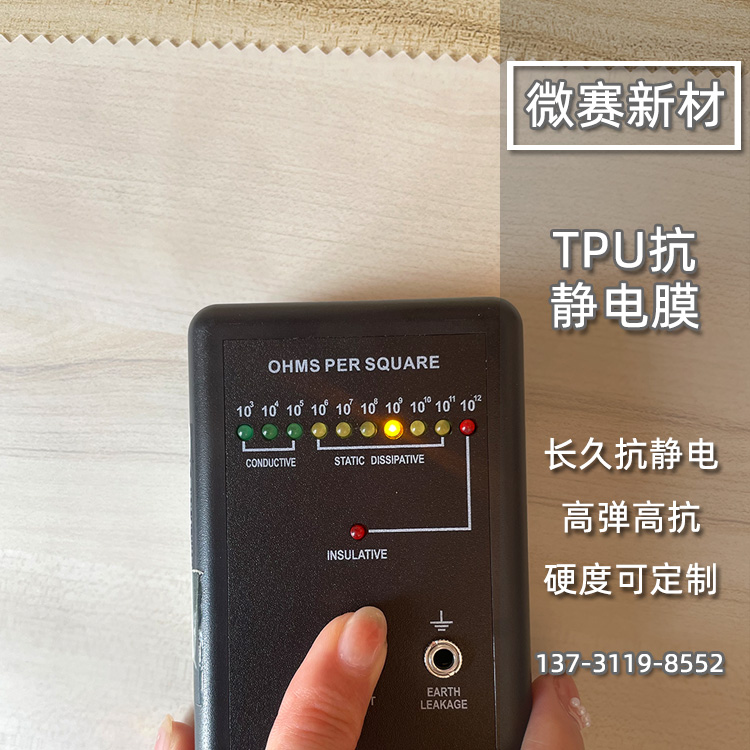 TPU抗静电膜,是通过调整TPU原料比例,采用常见的热塑性材料的流延、挤出等工艺进行加工,增加薄膜的抗静电功能性,电阻值范围可控制在10的7-11次方Ω,其产品仍保持良好的弹性和耐磨性。