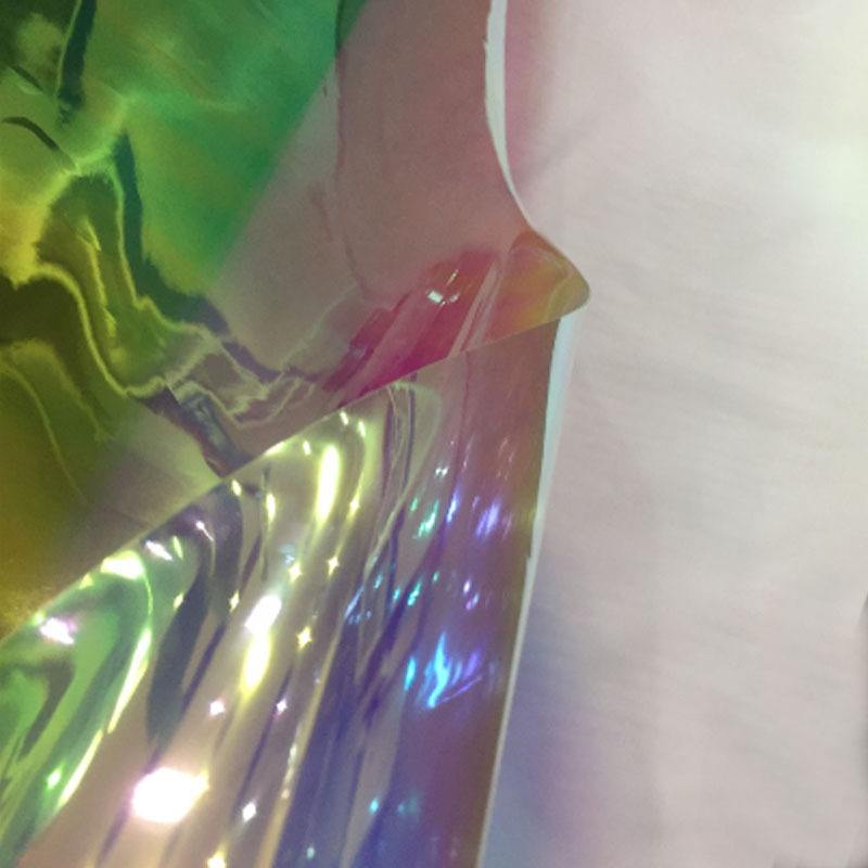 镭射彩虹膜的色彩由光干涉作用而成,随观察学生角度分析不同而颜色特征各异。镭射彩色膜分为红、黄、蓝、绿、紫等颜色,可以与不同产品颜色的纸、塑料、人造革复合,复合后还可以通过进行轧花、烫金、印刷,在彩虹膜以及表面质量造成一些花纹设计图案,从而使之更加丰富绚丽文化多彩。镭射膜的用途广泛适用于是乎手提袋包装包装纸、礼品盒等领域。