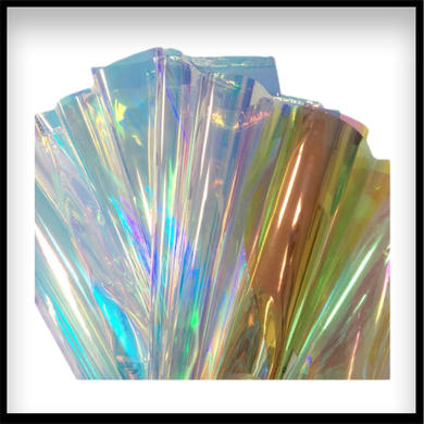 激光图文压制的原理是将激光成型的板材在高温下直接压制在薄膜基材或特殊涂层上,形成大小不一的凹凸不平的光折射点。光照后,不同波长的光的漫反射会使镭射膜呈现彩虹光。