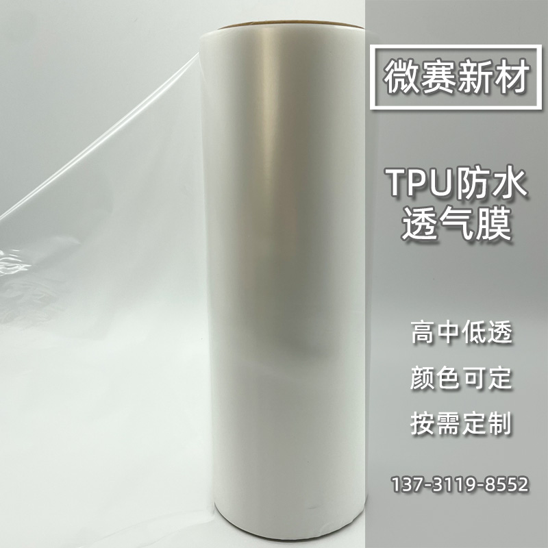 类型:聚醚、聚已内酯优势:高透湿性、手感好、高耐水压、加工性能好、耐水洗干洗 TPU防水透气膜以弹性体为主要材料,其弹性佳,强度高,在防水特性上有其它材料所无法比拟的物性表现(可承受水压10000mm以上,薄可达0.012mm);TPU薄膜除了具有高防水性外更具有好的透湿性(人体汗气可自由在薄膜间穿透)