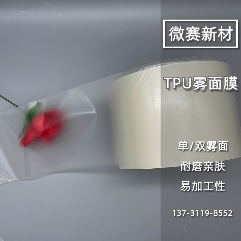 雾面TPU膜表面美观,雾面效果细腻,性能均一,耐磨性能好,且具有优异的拉伸性能、耐撕裂性能。